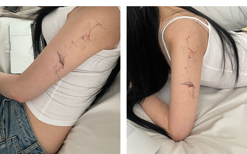 타투 아티스트 HEYHEIHEII 의 타투 도안을 사이즈와 색감 그대로 재현한 템포러리 타투입니다. 물 없이 손의 압력만으로 사용할 수 있는 제품입니다. 타투 아티스트의 도안을 먼저 경험하고 타투를 결정하세요.
